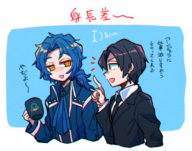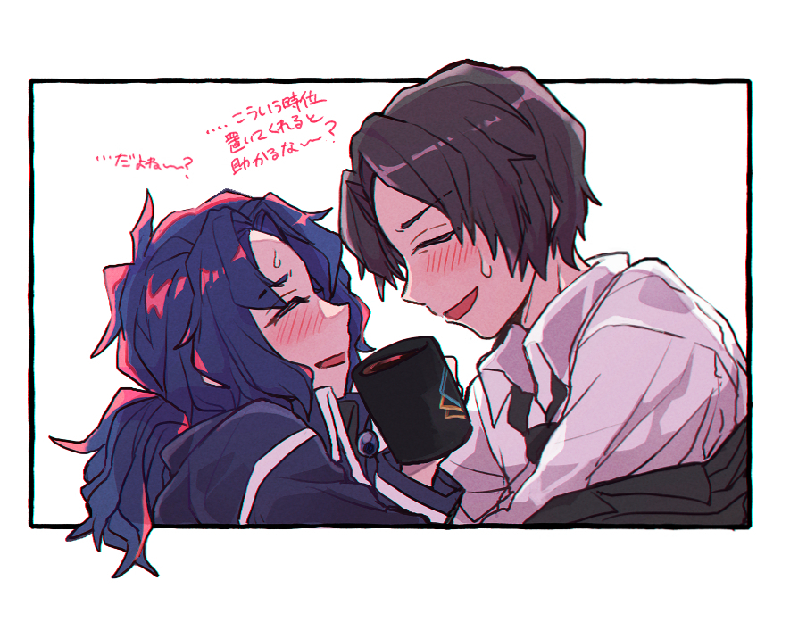 ケセドがコーヒー手放すタイミングを見失いすぎて変な感じになる2人が見たいよ~の絵